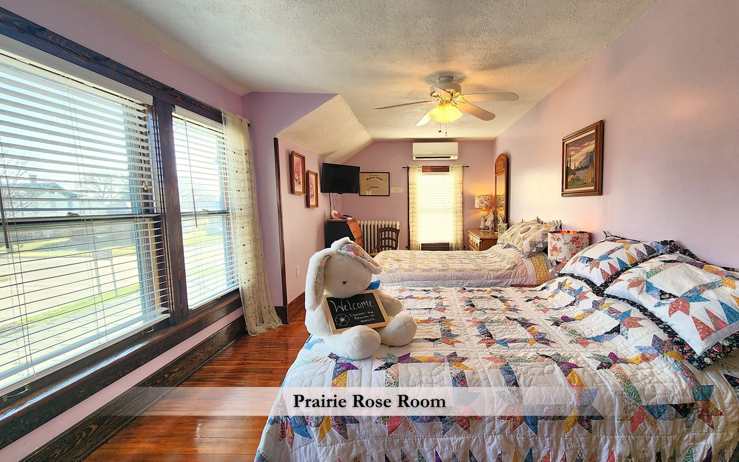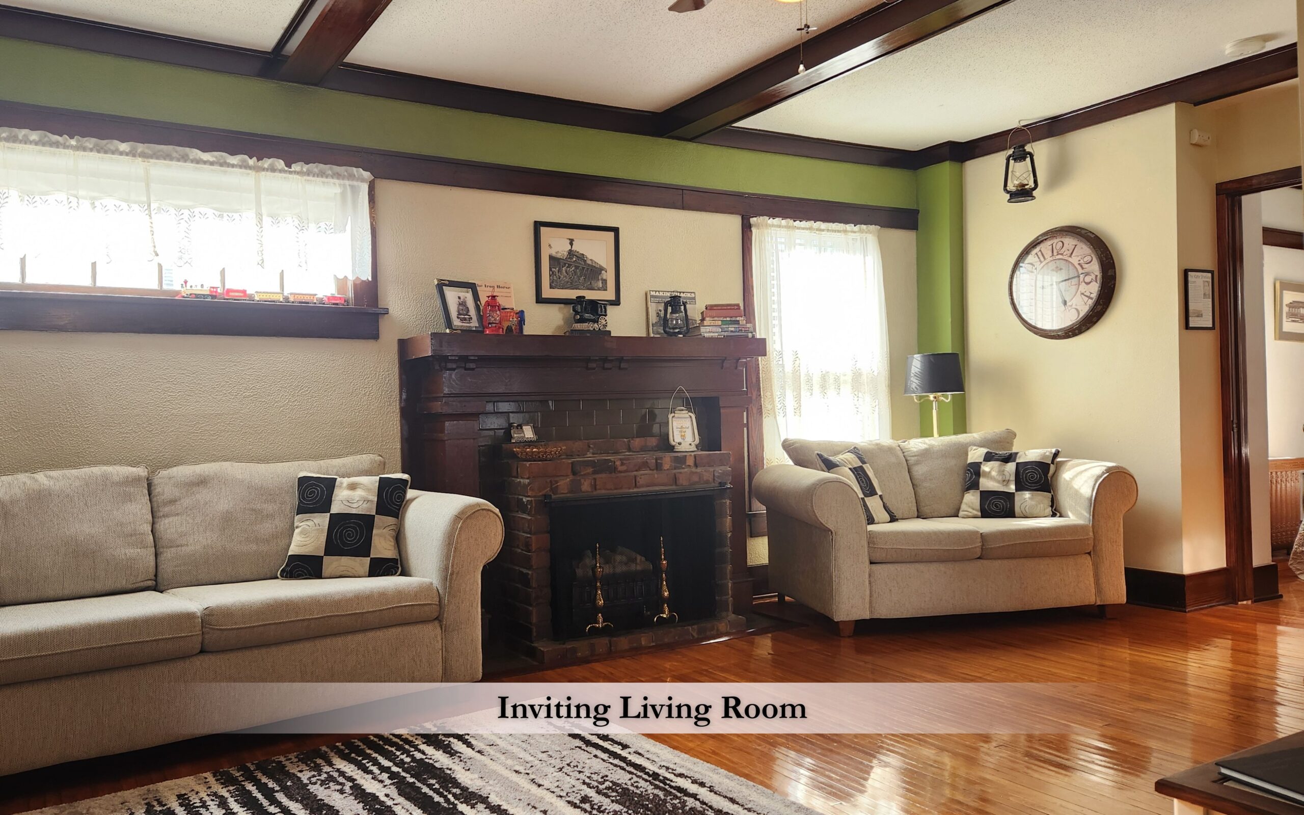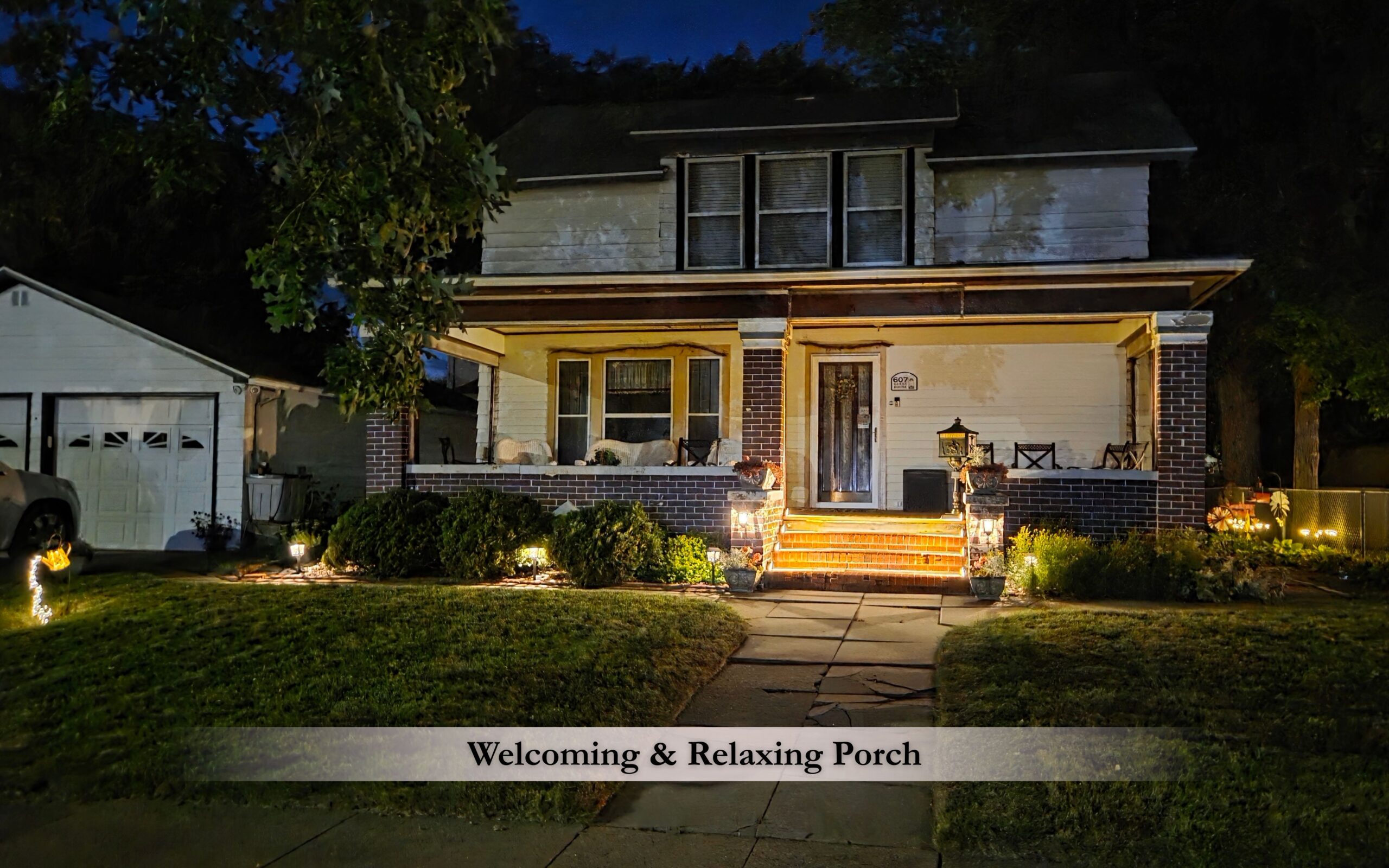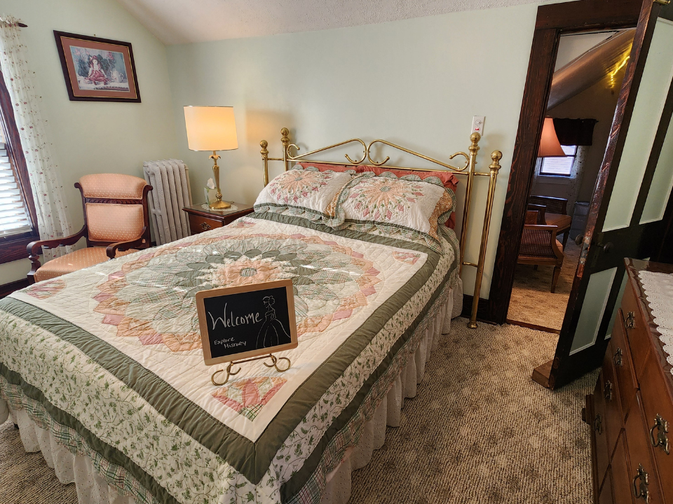 Today, the home blends historic character with thoughtful modern comforts. As you arrive, you’re greeted by a large, open 1800s front porch, a welcoming space made for relaxing and reconnecting. Whether you’re sipping lemonade, sharing stories, or enjoying a quiet moment, the porch sets the tone for a truly Midwest stay.