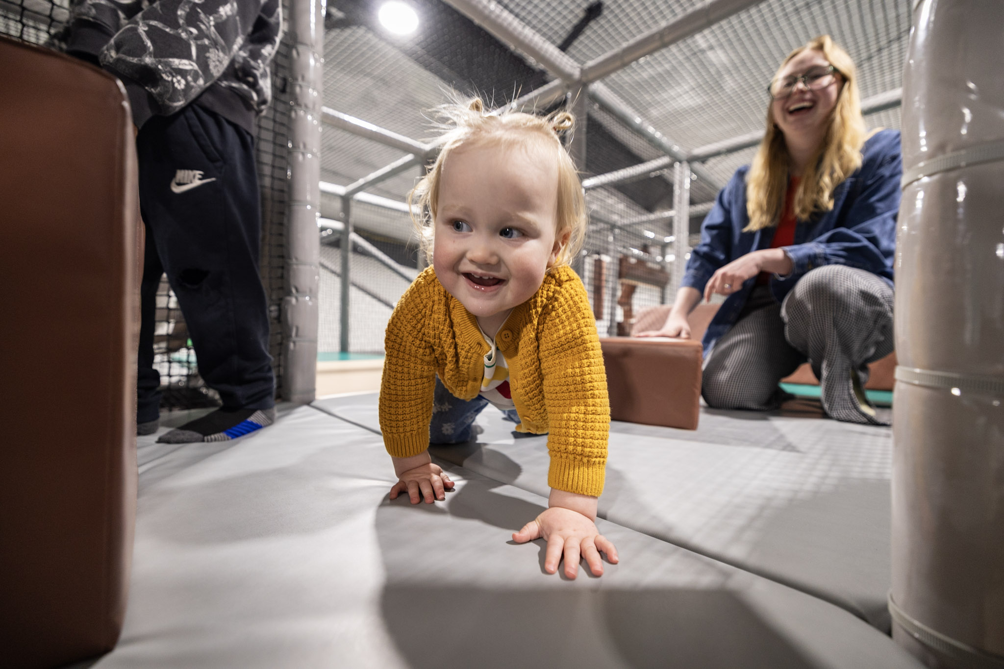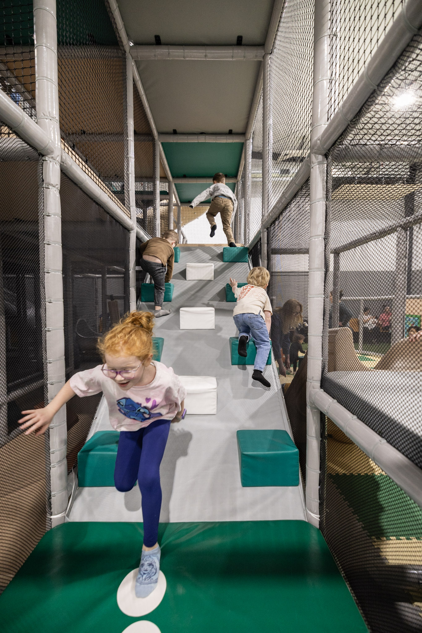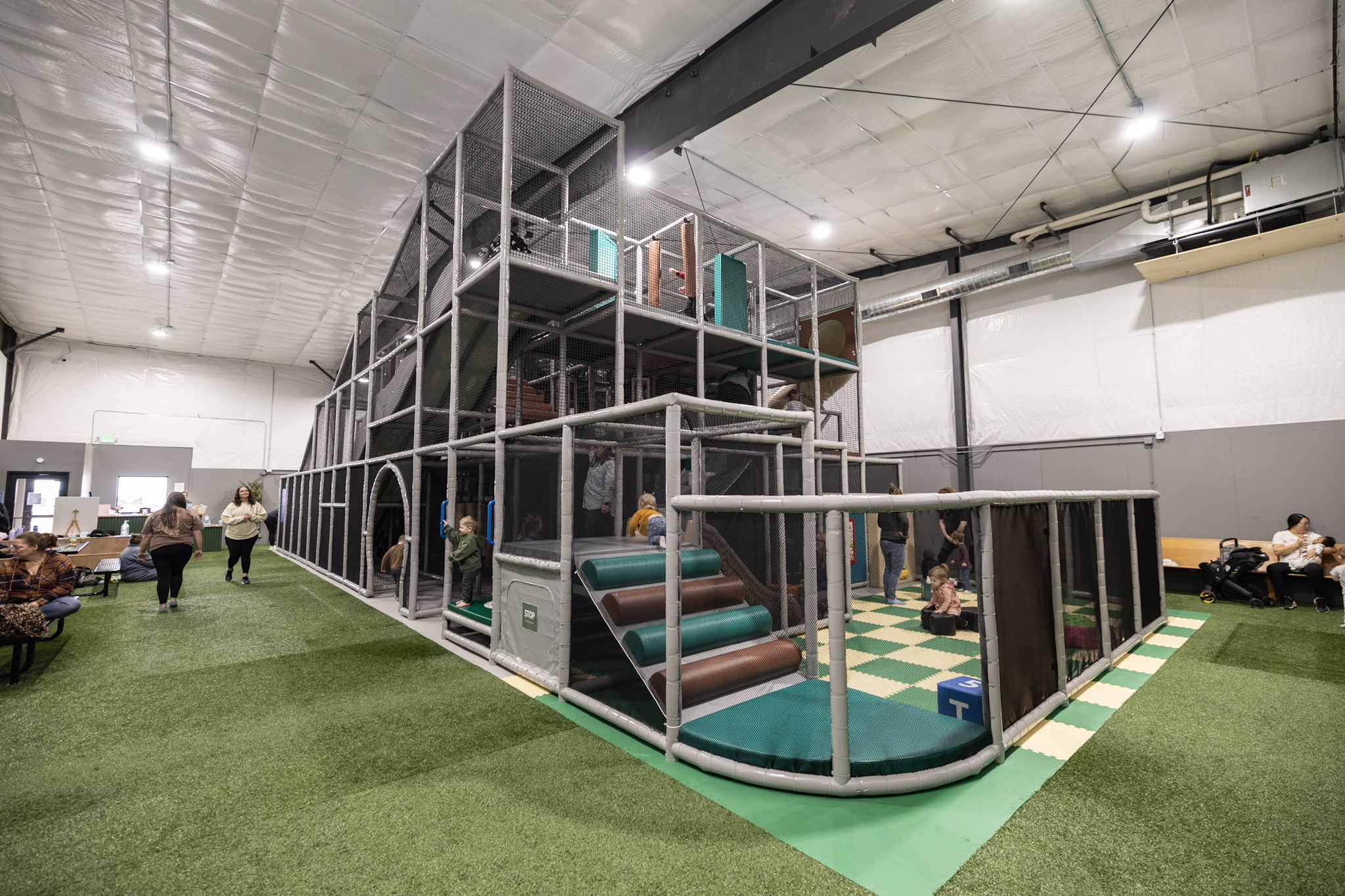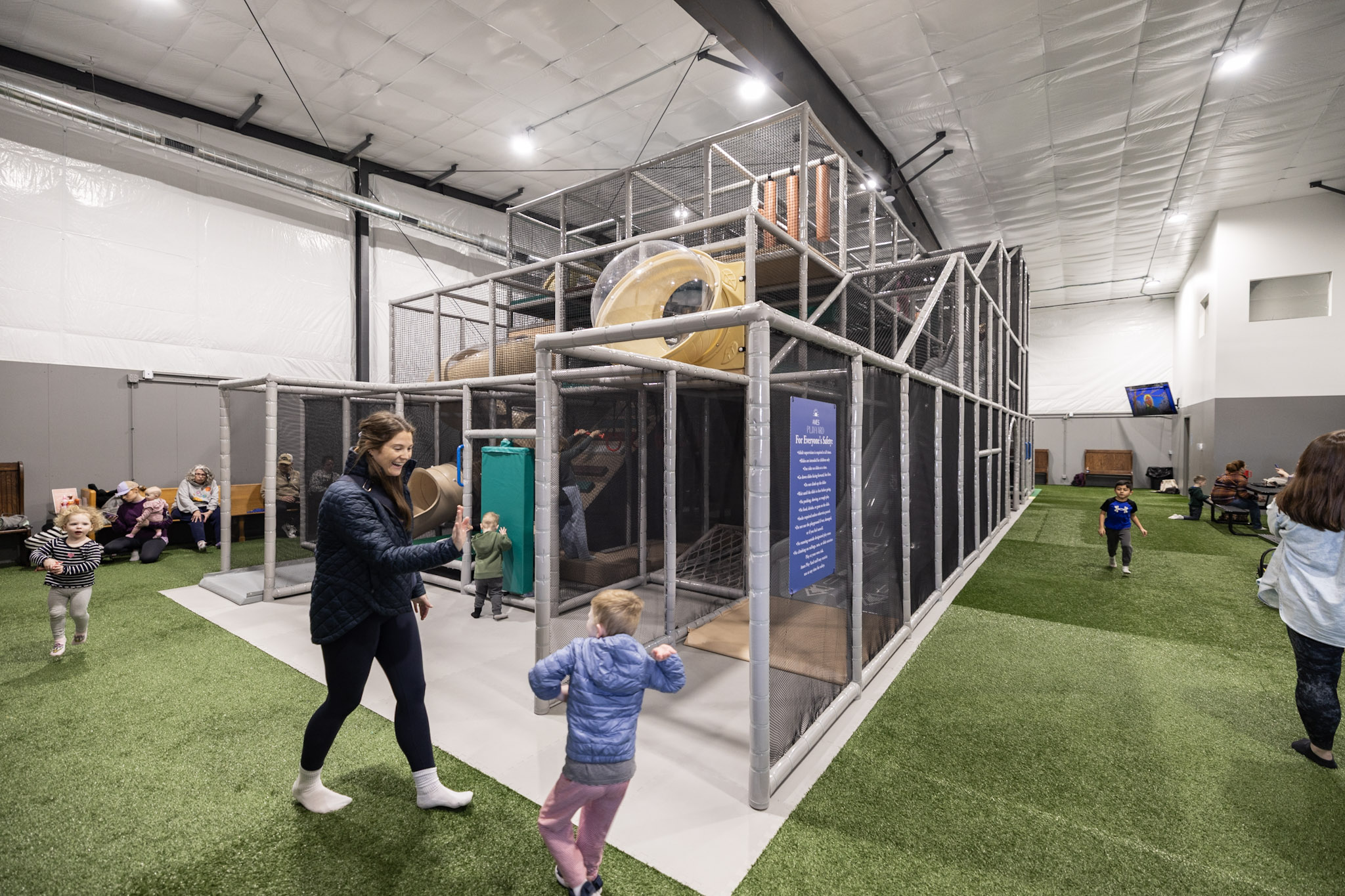 Ames Play Yard is especially popular during cold, rainy, or snowy days when outdoor play is limited, offering families a safe, weather-proof way for kids to burn off energy.