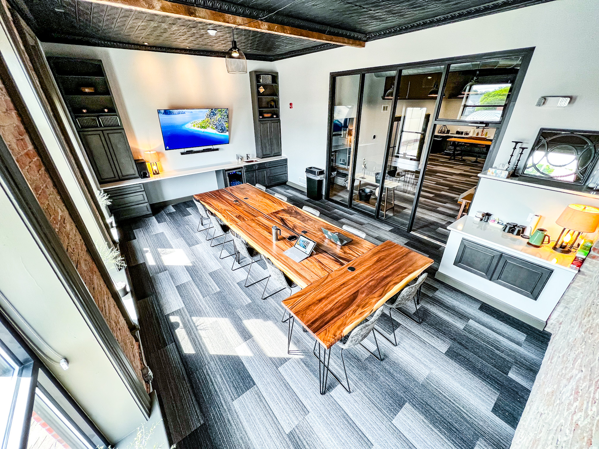 The space is designed to make hosting easy. Rentals include tables, seating, cocktail tables, a lounge area, and access to a kitchenette with dishes and tableware. We also provide a large TV or monitor with projector and HDMI hookup, making presentations, slideshows, and entertainment seamless. Ample parking and optional add-ons like catering and linens help simplify planning and setup, so hosts can focus on enjoying their event. Every detail is meant to support gatherings that feel relaxed, personal, and memorable.