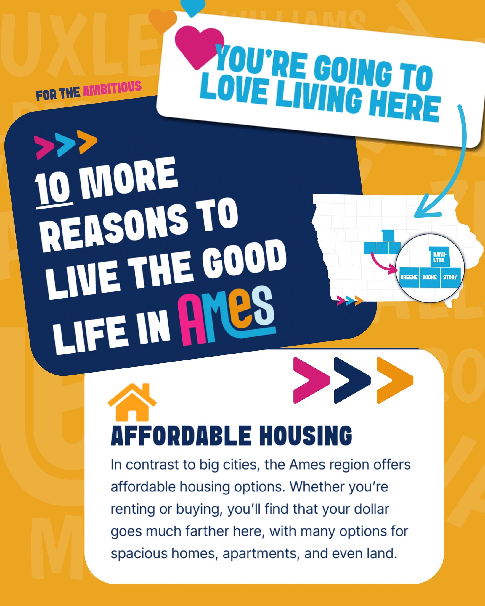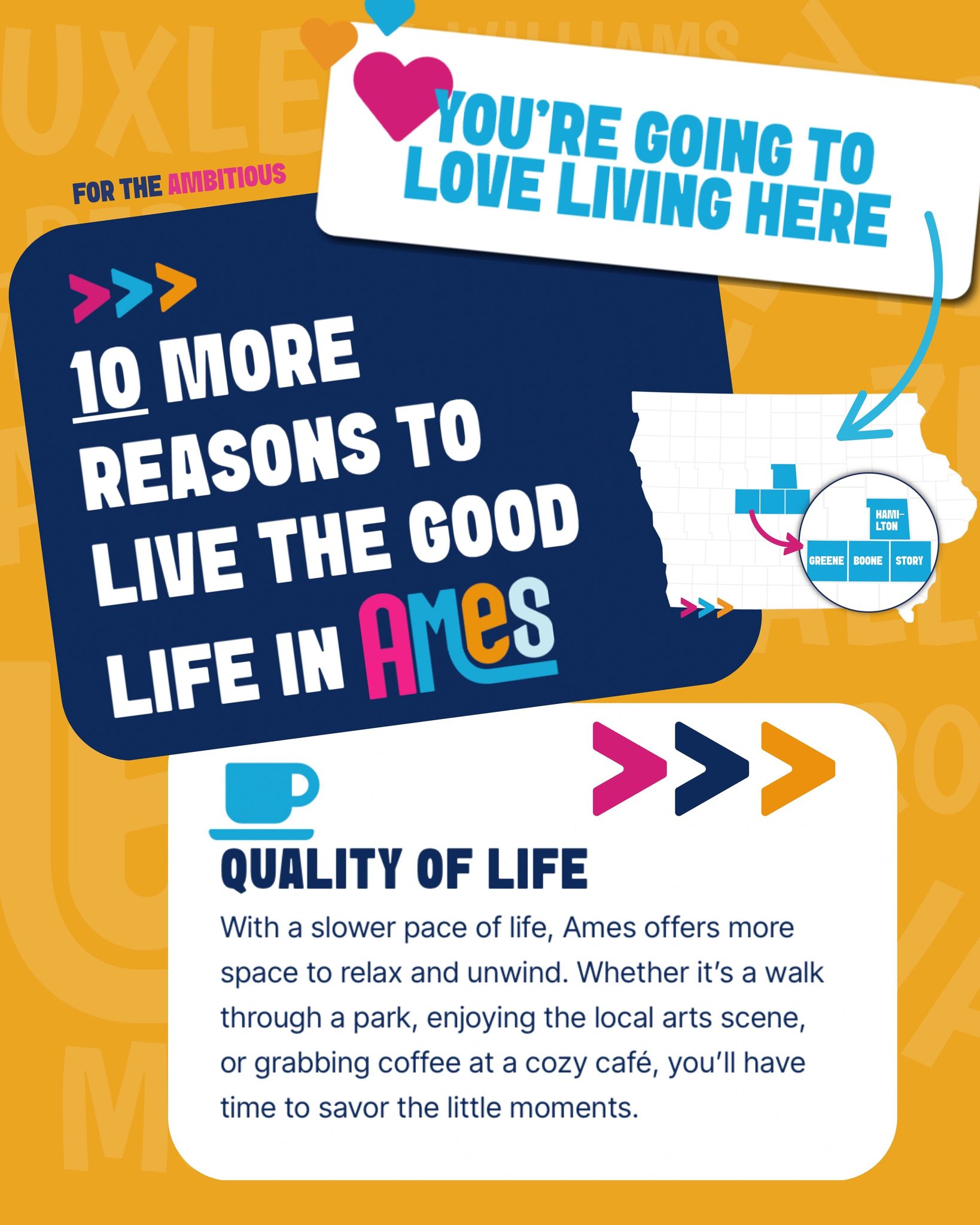 This community resource highlights what makes the Ames region a great place to live, work, and spend time. It brings together information on neighborhoods, housing, cost of living, community services, volunteer opportunities, and local events in one easy-to-navigate place.