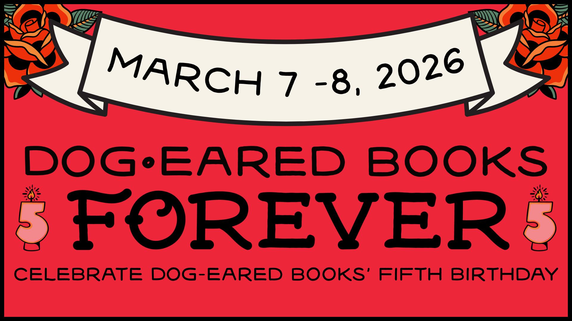 We’re celebrating Dog-Eared Books’ 5th birthday, so it’s time for a rager! Join us the weekend of March 7th – 8th to celebrate.