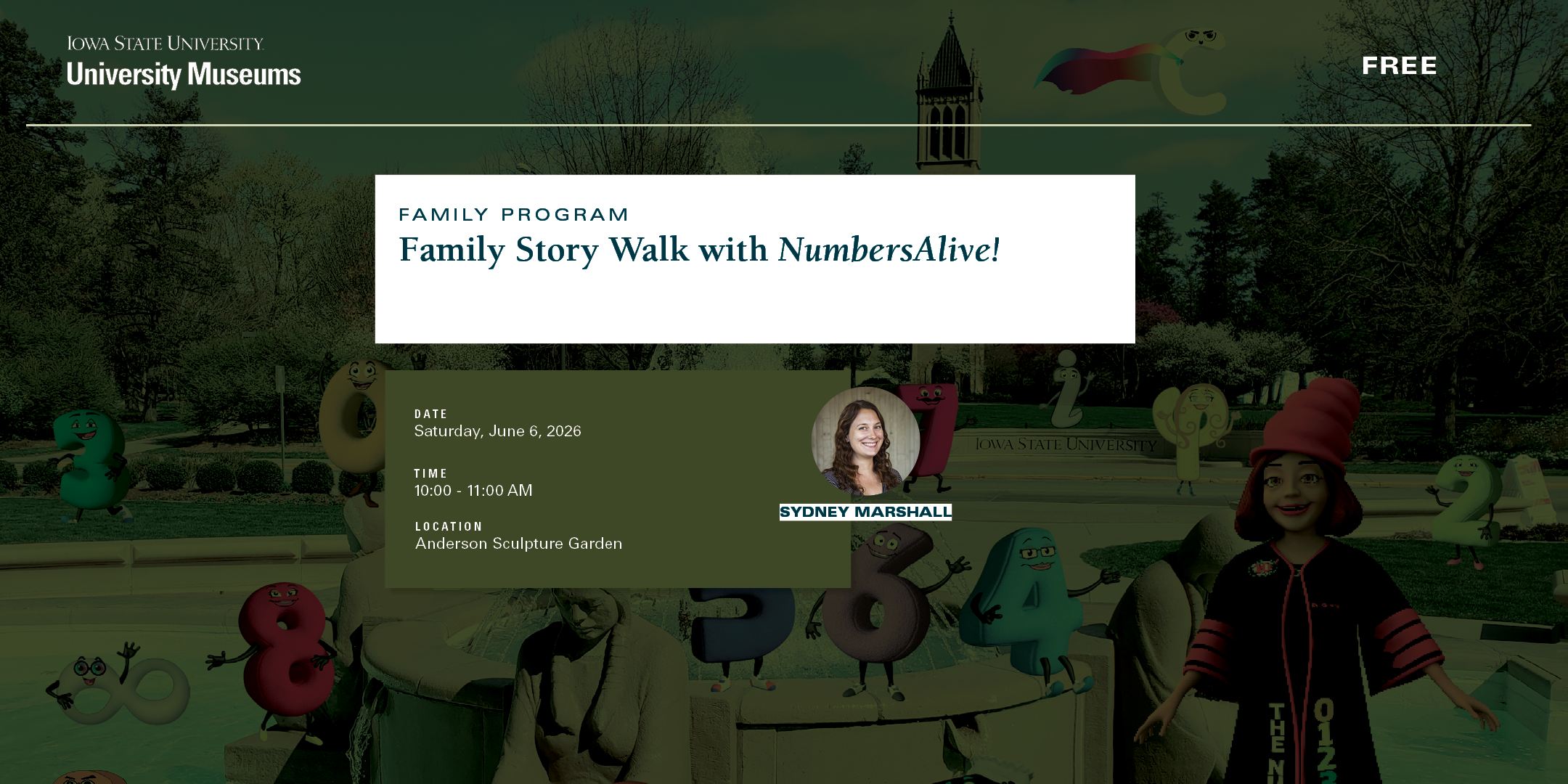 Join Sydney Marshall of University Museums for an interactive walk through the public art of Iowa State’s campus with the NumbersAlive! book. Look closely to discover mathematical concepts within the public art collection.