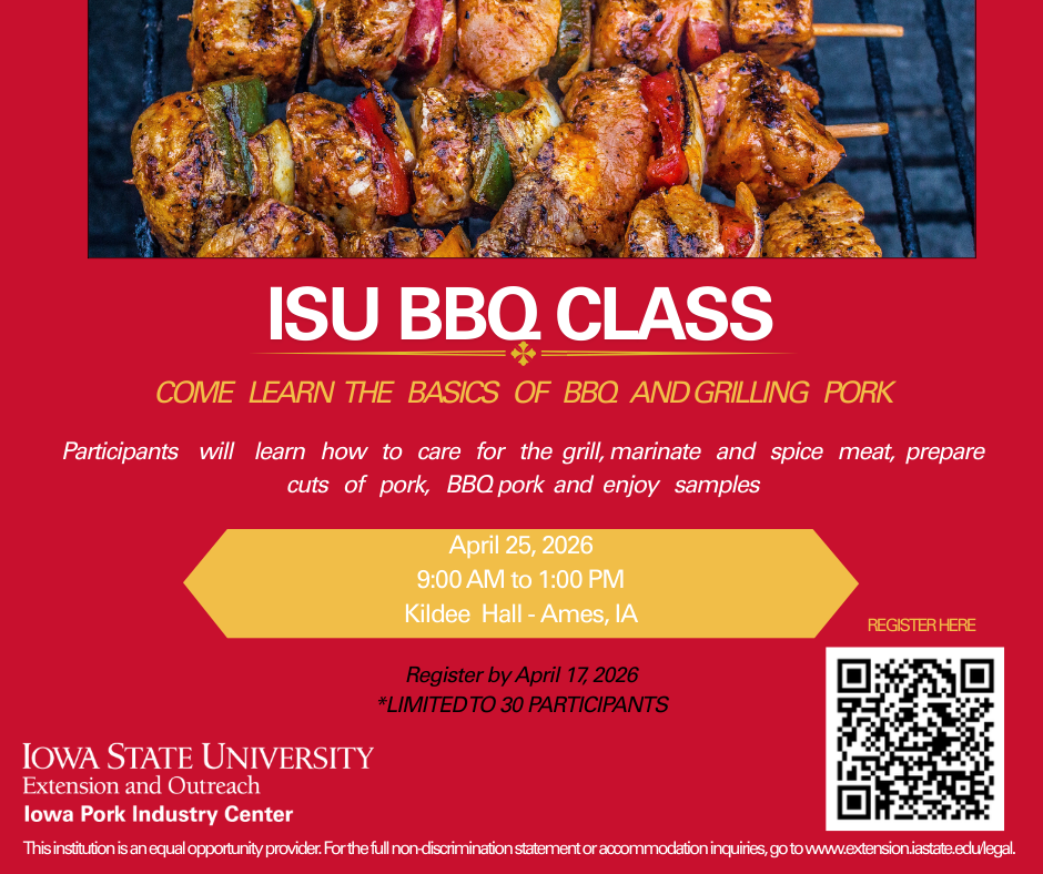 Participants will learn how to care for the grill, marinate and spice meat, prepare cuts of pork, BBQ pork and enjoy samples.
