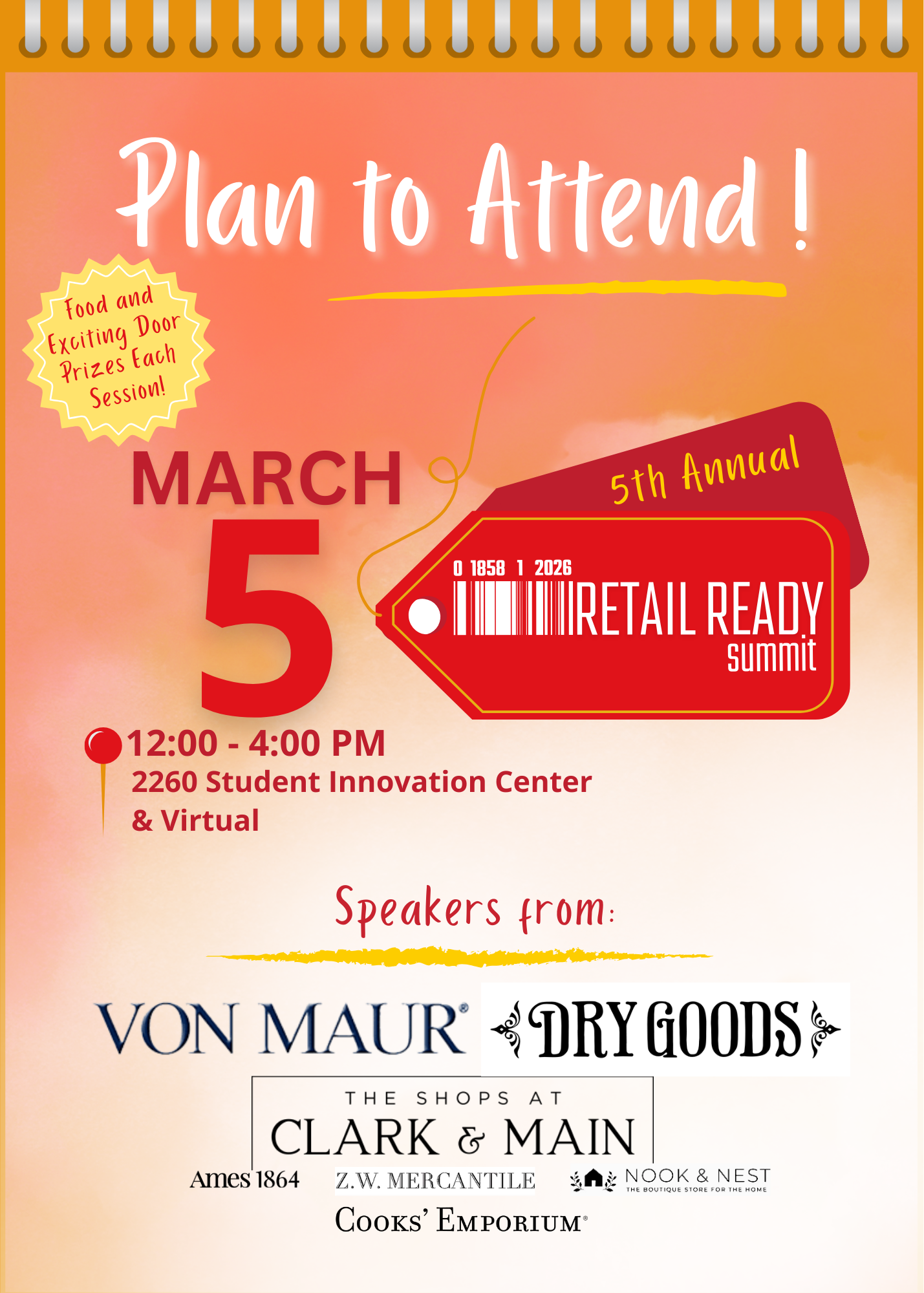 Retail is evolving fast. Are you ready? Hosted by the department of apparel, events and hospitality management at Iowa State University, featured speakers from local retailers such as Cooks’ Emporium, Nook & Nest, Z.W. Mercantile, The Recipe, Von Maur and Dry Goods will share real-world insights on innovation and entrepreneurship. Come for one hour or stay for all three, and leave inspired to build what’s next. Refreshments and door prizes available at each session.