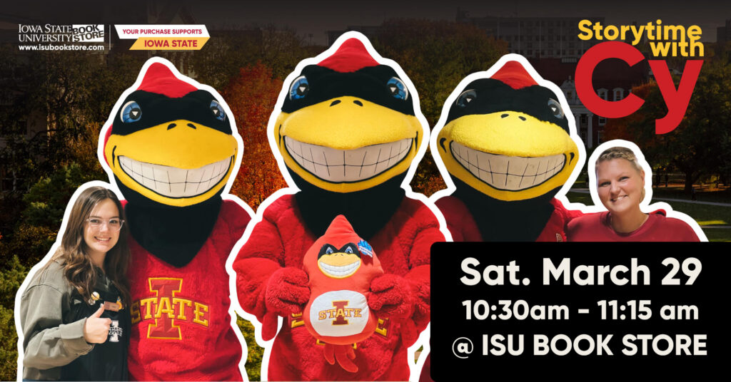 Join Cy at the ISU Book Store as we embark on our FIRST-EVER story time together. You seriously don’t wanna miss this one!