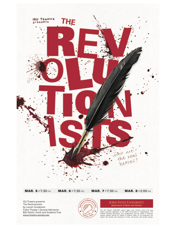 ISU Theatre Accessibility Statement: “Individuals with disabilities are encouraged to participate in all ISU Theatre events. If you require a reasonable accommodation to do so, please contact ISU Theatre at least one week prior to the event. isutheatre@iastate.edu, 515.294.2624.