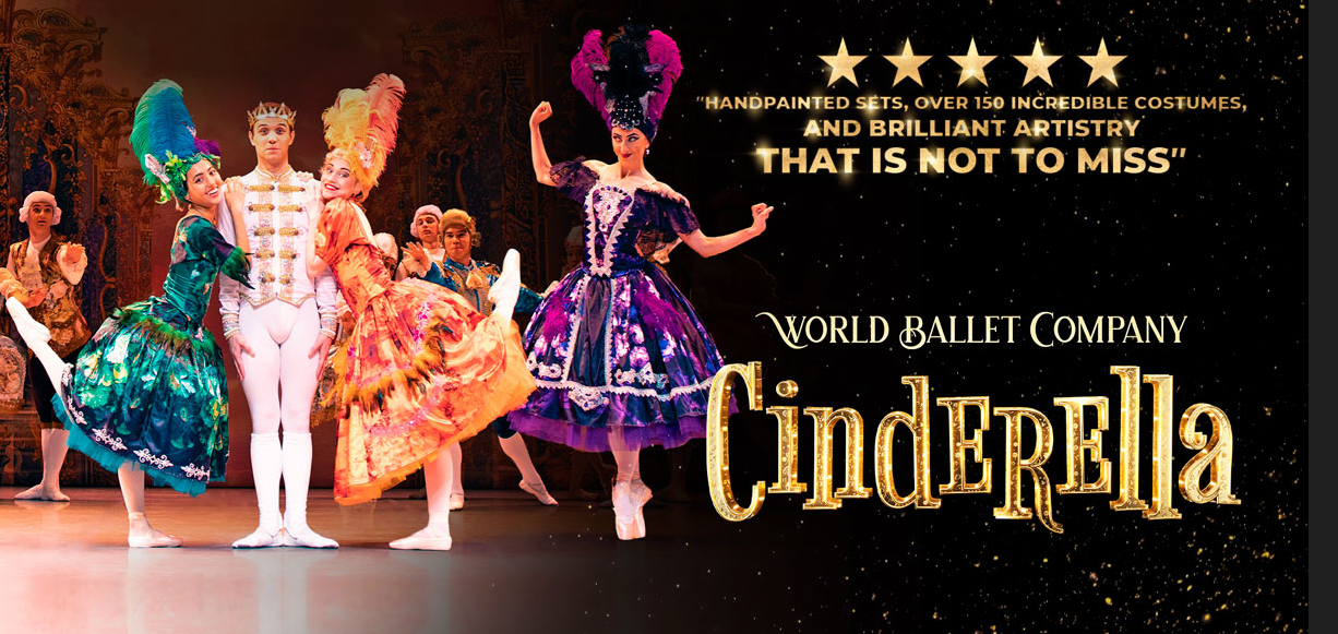 World Ballet Company’s Cinderella features a dazzling cast of 40 international dancers, over 150 radiant hand-sewn costumes, exquisite hand-crafted sets, and enchanting choreography by Marina Kesler. From the mischievous evil stepsisters to the breathtaking ballroom scenes, every moment is filled with charm, wonder and everything you’ve loved about this story for years.